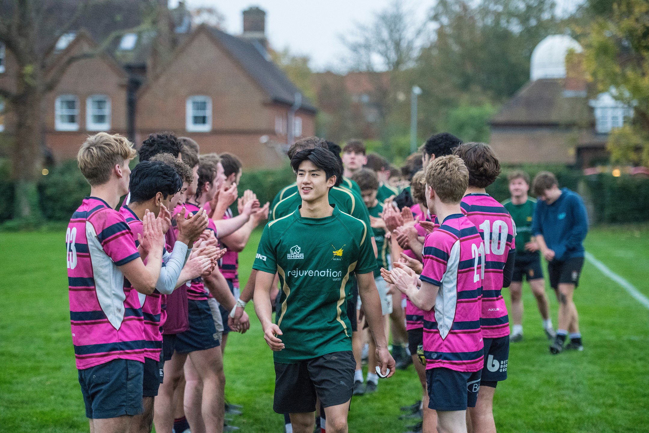 Queen's-Jesus-Magdalene are applauded through the tunnel by St Catharine's-Homerton after a league match // Dik Ng 2024